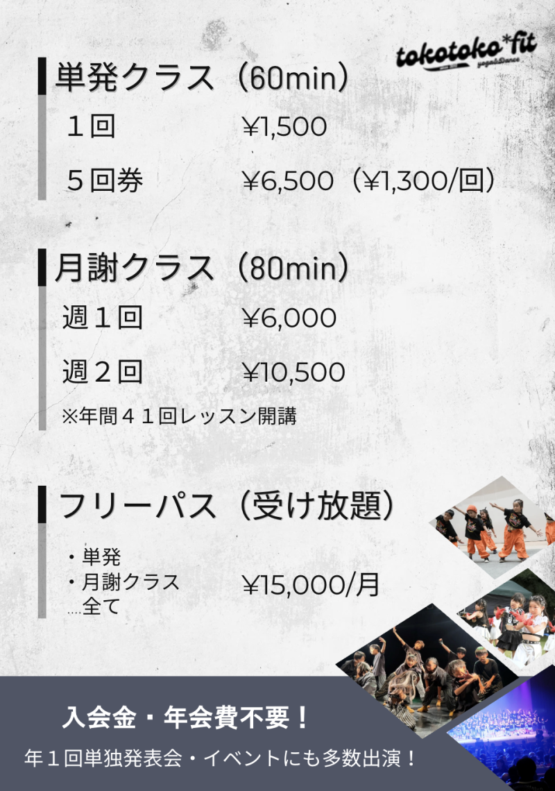 ダンスクラスでは単発・お月謝クラスをお選びいただきます。